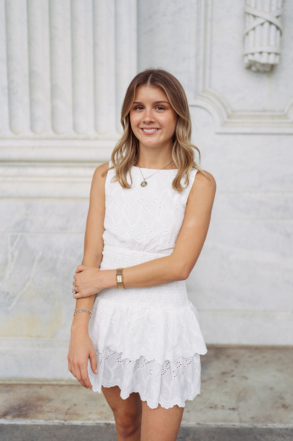 Sarah is from Dayton, Ohio, and a sophomore studying Sports Management. Her dream venue is on a Vineyard in Tuscany, and her favorite part of wedding days is seeing how happy everyone is during the ceremony.