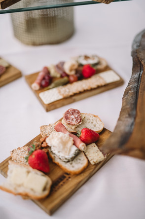 Another one of our favorite ways to eliminate the spread of COVID is instead of having buffet style or passed hors d'oeuvres, opt for personalized grab-and-go charcuterie boards at cocktail hour! Guests love this idea and it is a great way to keep germs to a minimum!
