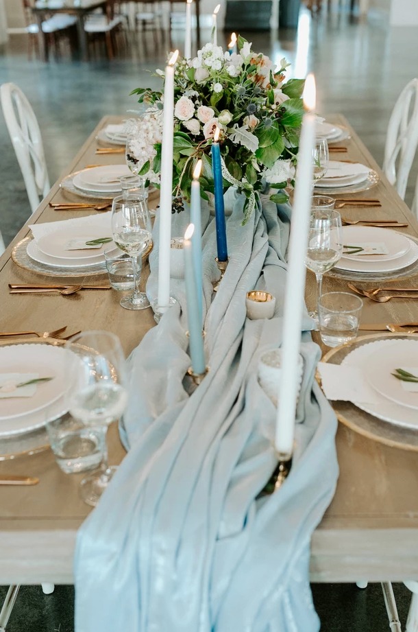 "Colored glassware are very on trend right now. The Essex Blue Glasses are unique and a statement piece to any table design. They look like something you would own personally. It's a great example of how home trends influence the rental market. Now you can host a large party and include something very chic and as if it was your own."