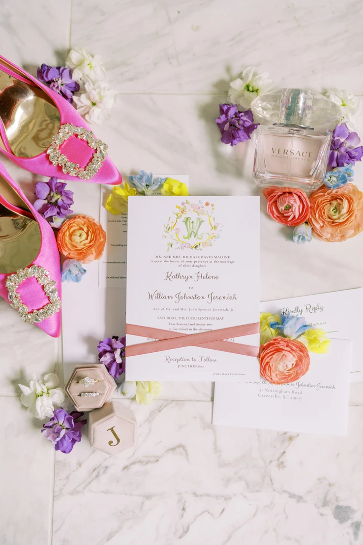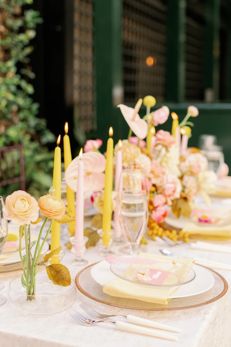 Bright, Bold, and Vibrant colors are in! Instead of having one accent color have 3 or more! Having a fun color palette at your wedding lets the couple show off their fun side. Yellows, pink, orange, purple, you name it will make the best color choice at your wedding. Having bright colors show cheerfulness and warmth. Adding color to your invitation excites your guests to see what your wedding will look like. Check out more color wedding inspiration at this Styled Shoot.